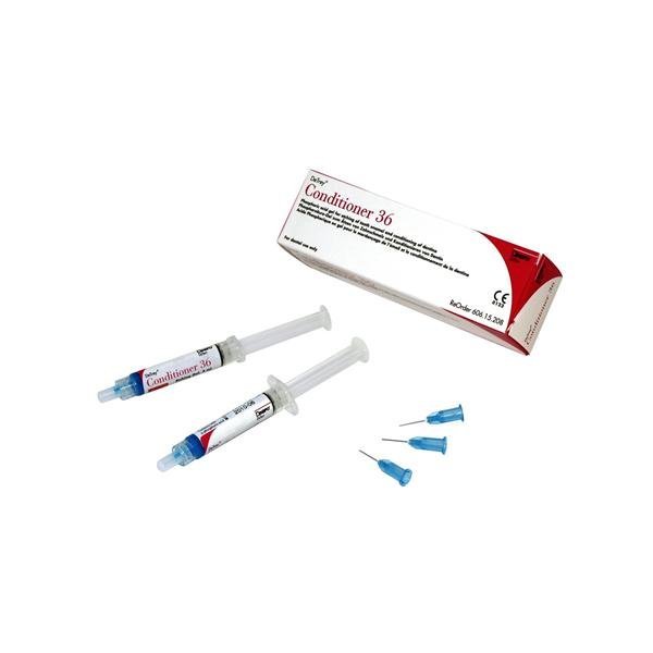Dentsply DeTrey Conditioner Etching & Dentin Conditioning DeTrey Conditioner 36 is a blue-tinted gel containing 36 % phosphoric acid for the etching of tooth enamel and conditioning of dentine prior to bonding with resin-based materials. INDICATIONS :- Enamel etch technique in connection with composite and compomer restorations. Total etch technique in connection with composite and compomer restorations….