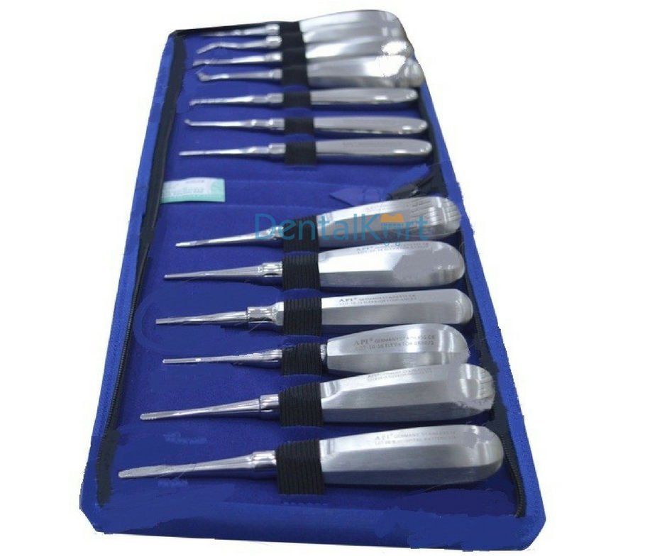 8.Coupland – This elevator has one convex side inserted towards the bone and one concave side inserted towards the root surface with a flat end. Work similar to straight elevator.