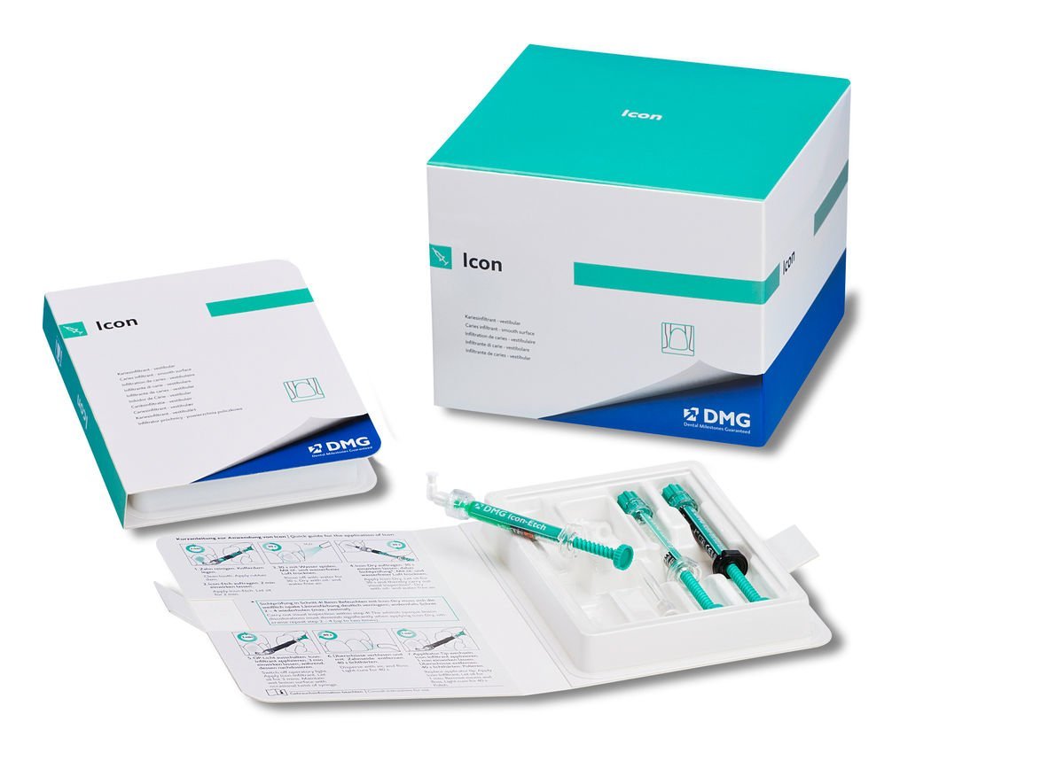 • Cosmetically remove white spot lesions in just one visit! • Icon offers a revolutionary approach to the cosmetic treatment of carious white spot lesions. • Lesions infiltrated by Icon take on the appearance of the surrounding healthy enamel. This provides a highly esthetic alternative to micro-abrasion and restorative treatments of cariogenic white spots – all in one simple treatment, with no drilling!