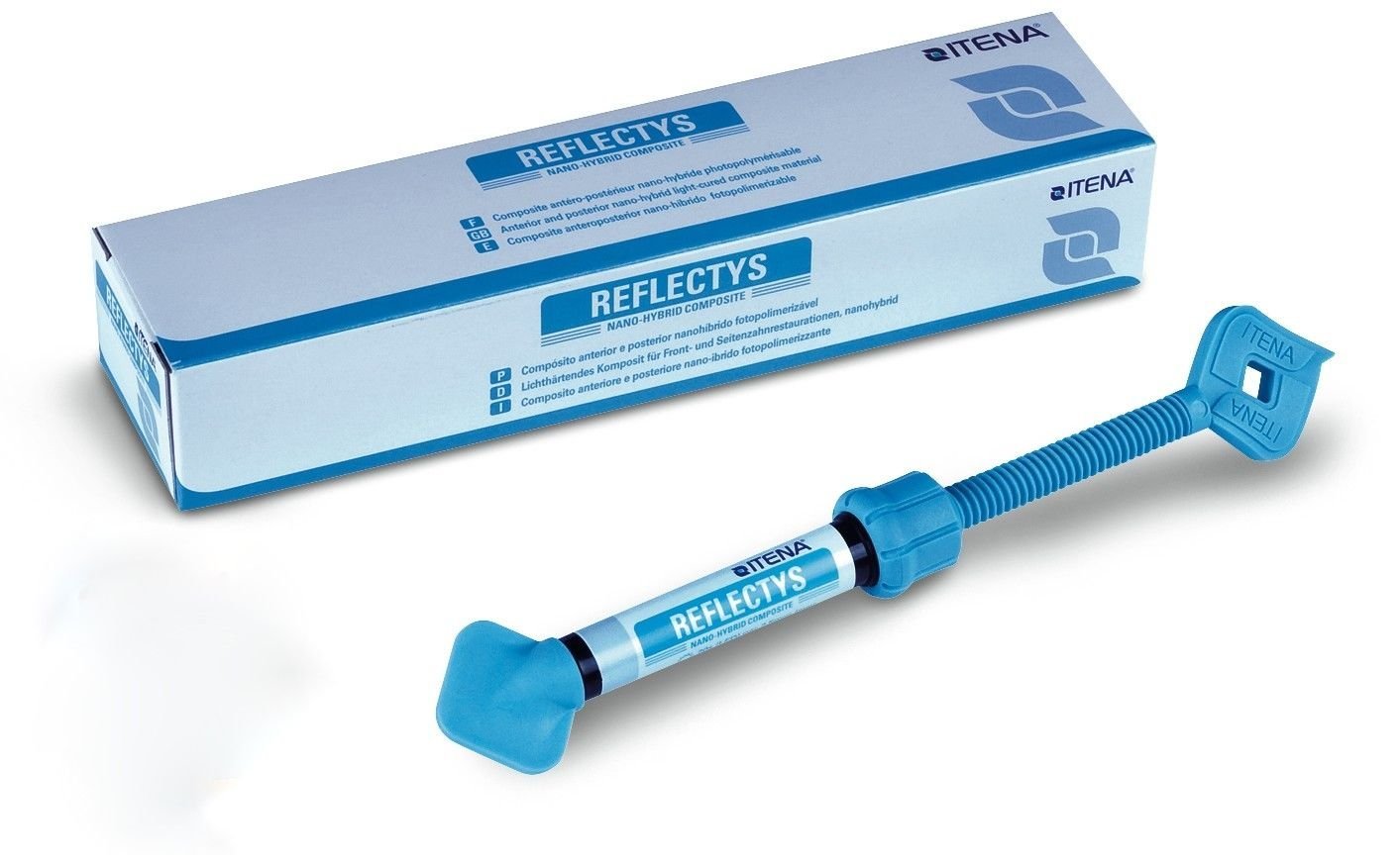 Itena Reflectys Composite Syringes is a light-cured micro-hybrid composite reinforced with nano-fillers. The filler content (80%) is embedded in a resin matrix (20%). Reflectys contains particles of different sizes and structure that enhance the material’s mechanical resistance and aesthetic properties.