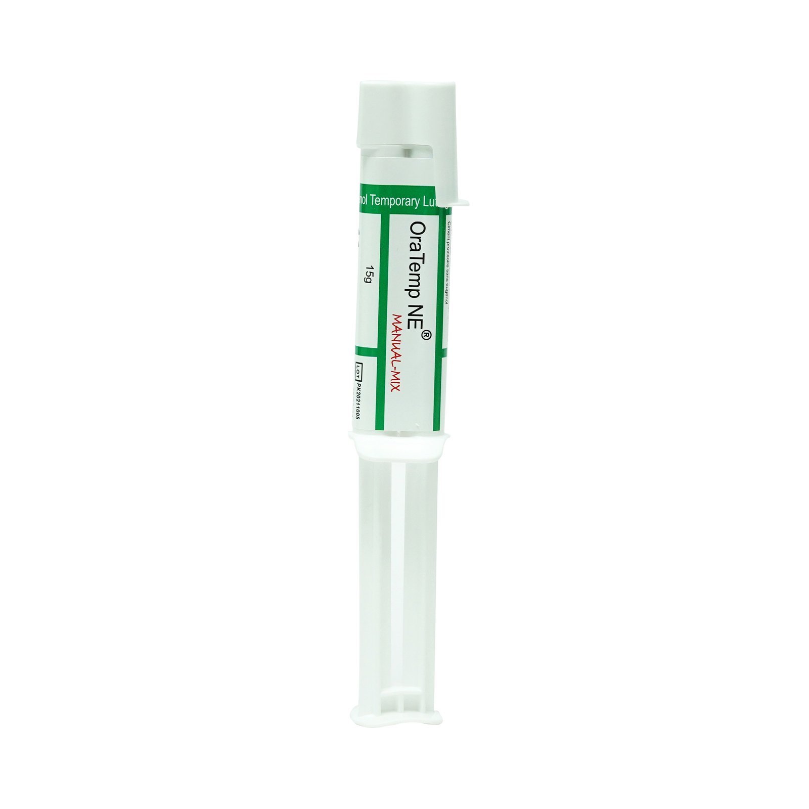 OraTemp NE is a non eugenol temporary cement which permits placement and retention under function of permanent crowns, bridges, splints and their temporary counterparts. OraTemp NE is insoluble in oral fluids and retains a tight marginal seal to prevent leakage of these fluids under the restorations.
