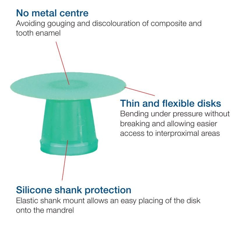 - Greater elasticity and resilence of the disks facilitate easy polishing in interproximal areas.