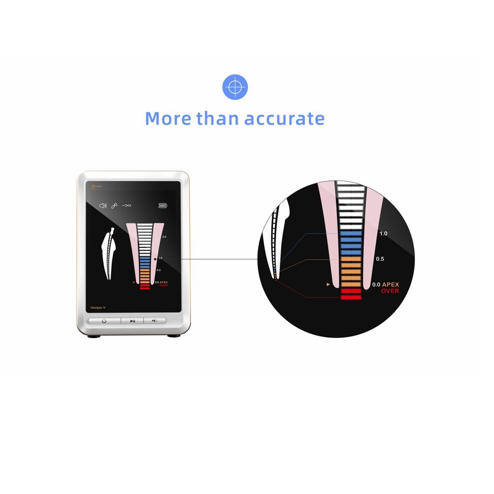 Please Note: Accuracy in readings for apex locators is claimed to be 97.7% accurate. Readings may vary from the conventional method of working length determination (radiographic method) & may fluctuate in cases where the precautions (recommended in user manual) are not followed