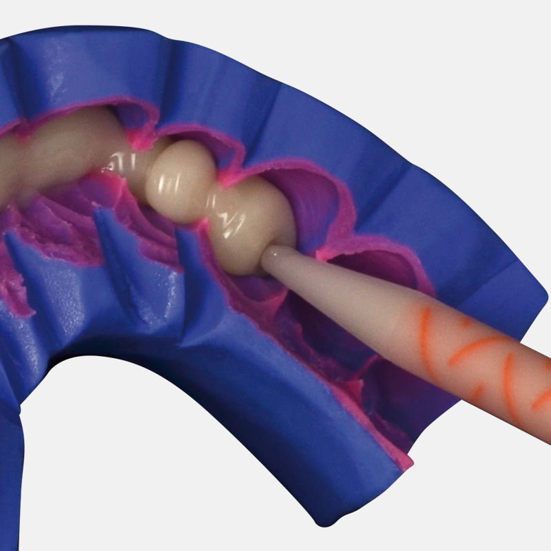 - Position the mixing tip in the deepest part of the impression, leaving it immersed in the material to prevent bubble formation.